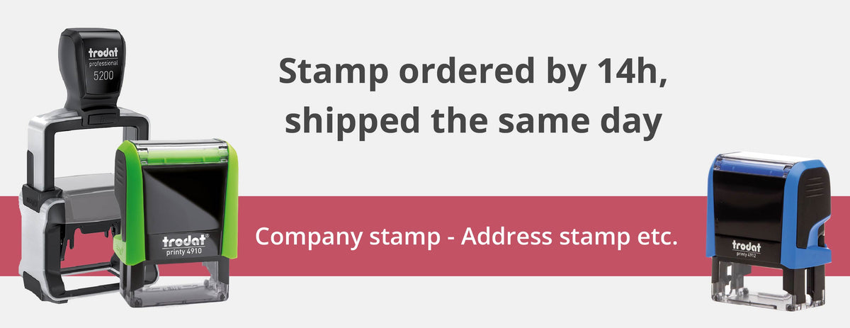 We manufacture your stamp within 24 hours on weekdays and dispatch it directly to you - also by express delivery on request. This means you receive your customised stamp without a long wait.