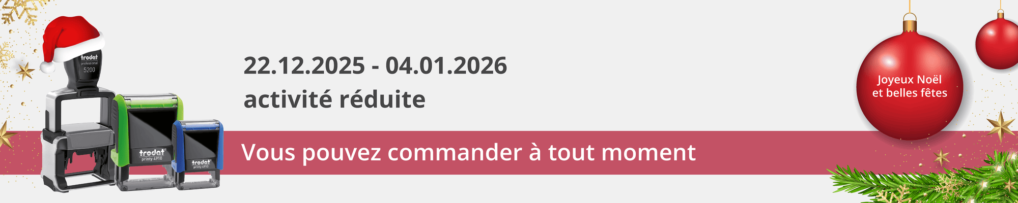 En raison de la variété des tampons dateurs, nous n'avons pas tous les modèles en stock le délai de livraison peut être de 2 à 3 jours ouvrables. Nous vous demandons votre compréhension. Notre assortiment de tampons dateurs comprend les formats allemand, français, italien, anglais, néerlandais et ISO.