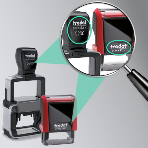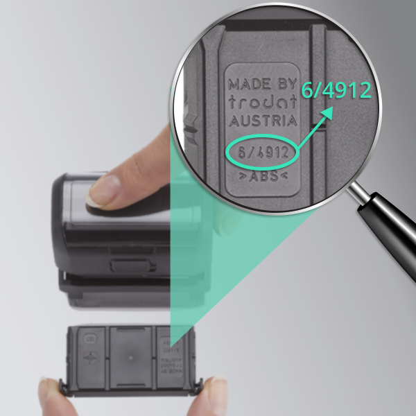 Pour tous les tampons Trodat et Colop, vous pouvez commanderles plaques de texteetles cartouches d'encrage(aussi appelés cassettes d'encre) correspondants chez nous. Assurez-vous d'avoirle numéro de votre modèle de tamponà disposition afin de pouvoir commander le matériel de remplacement adéquat et correspondant. Vous trouverez le numéro de modèle sur le corps de votre tampon.