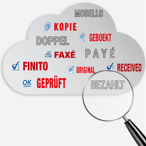 Nous avons des modèles de tampons "fixes" prêts à l'emploi, ainsi que des modèles de tampons que vous pouvez personnaliser selon vos propres souhaits. Vous pouvez donc rechercher des textes imprimés de timbres comme COPIE, SAISIE, ABACUS, etc., mais aussi des groupes de modèles comme tampon d'examen, tampon de médecin, etc. Nous sommes également heureux de recevoir vos suggestions si vous pensez qu'il y a quelque chose dans notre assortiment de tampons que nous ne proposons pas encore.